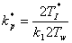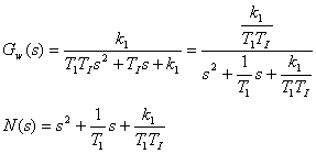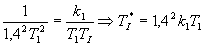 Na základě přenosu přiřadíme regulátor PI a určíme vztahy pro optimální hodnoty stavitelných parametrů regulátoru, viz tabulka 10, řádek 4 (T=0)